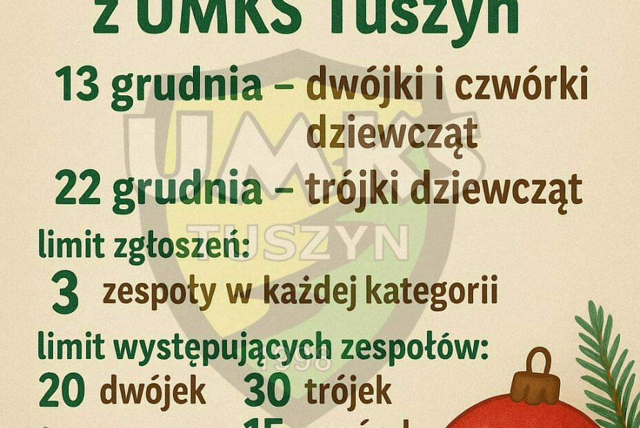 Powoli kierujemy się w stronę świątecznego czasu, który możemy spędzić w doborowym towarzystwie minisiatkówki. UMKS Tuszyn zaprasza na turniej „2”, „3” oraz „4” dziewcząt pod hasłem „Świąteczne miniSIATKARSKIE szaleństwo z UMKS Tuszyn. Organizator zachęca do zgłoszenia wszystkich chętnych zespołów. Link do zgłoszeń znajdziecie w komunikacie… Dowiedz się więcej »Zaproszenie na Turniej minisiatkówki dziewcząt „miniSIATKARSKIE szaleństwo z UMKS Tuszyn”!