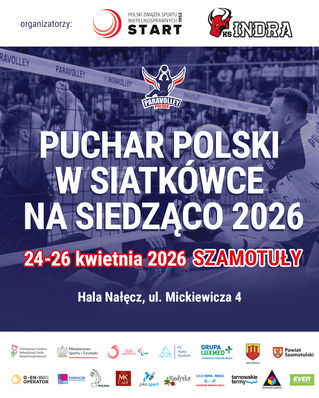 Zapraszamy do Szamotuł do hali Nałęcz, gdzie w dniach 24 – 26 kwietnia odbędzie się Puchar Polski w Siatkówce na siedząco.