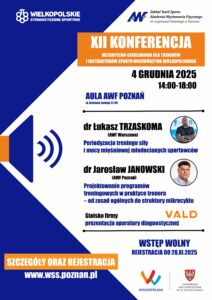 Serdecznie zapraszamy na XII Konferencję Metodyczno-Szkoleniową dla trenerów i instruktorów sportu województwa wielkopolskiego, która jest współorganizowana przez Wielkopolskie Stowarzyszenie Sportowe oraz Zakład Teorii Sportu Akademii Wychowania Fizycznego w Poznaniu.